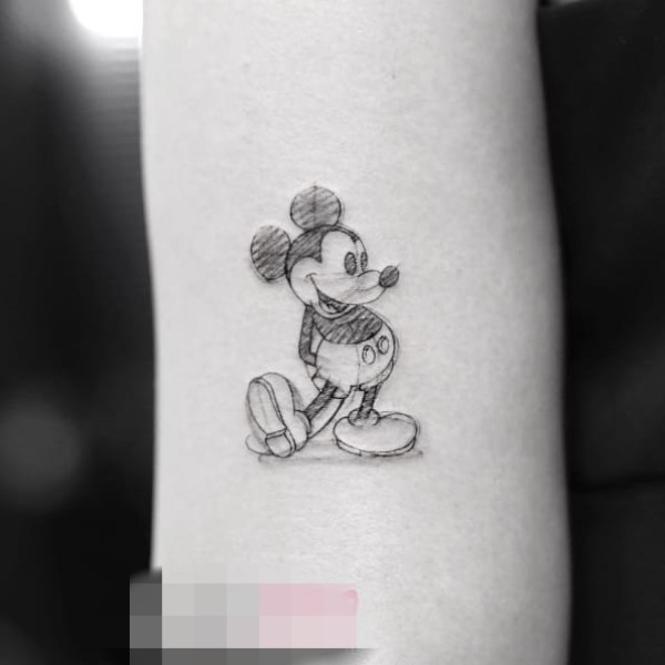 一组充满童年回忆的简单个性线条纹身米老鼠纹身图案