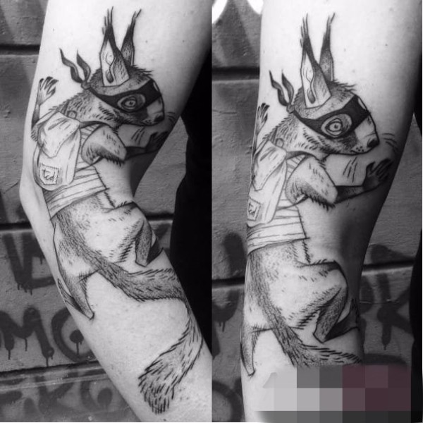 一组关于动物和人物的黑白纹身点刺技巧简约线条纹身图案