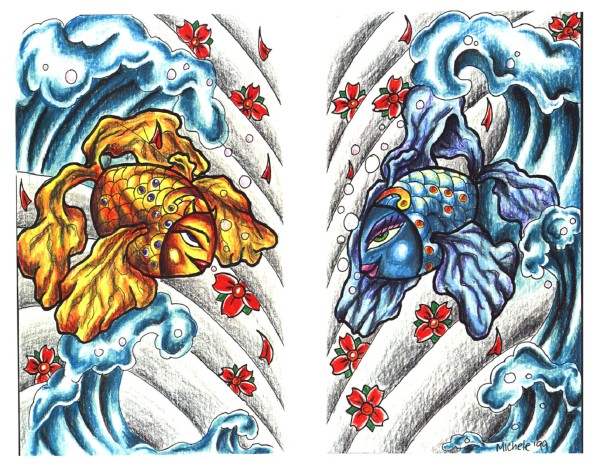 双鱼座纹身手稿_45张十二星座之双鱼手稿纹身图案