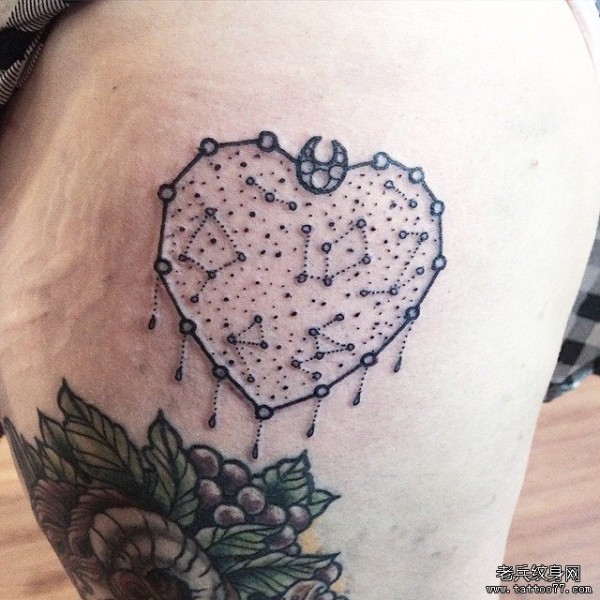 欧美线条蕾丝挂饰心形点刺纹身图案