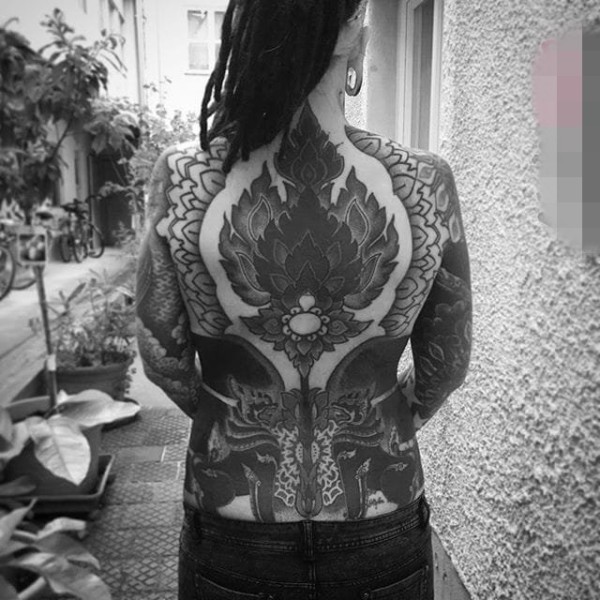 10款大面积黑白灰风格几何元素点刺技巧全身纹身图案