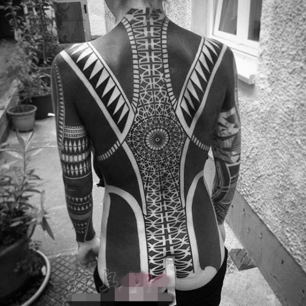 10款大面积黑白灰风格几何元素点刺技巧全身纹身图案