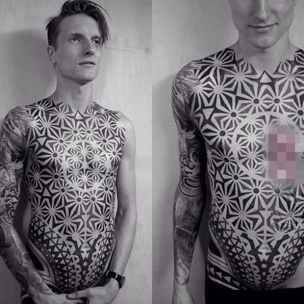 10款大面积黑白灰风格几何元素点刺技巧全身纹身图案