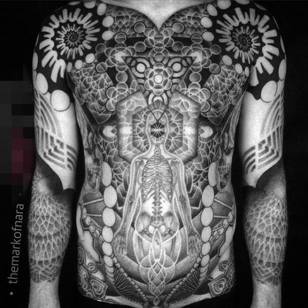 10款大面积黑白灰风格几何元素点刺技巧全身纹身图案