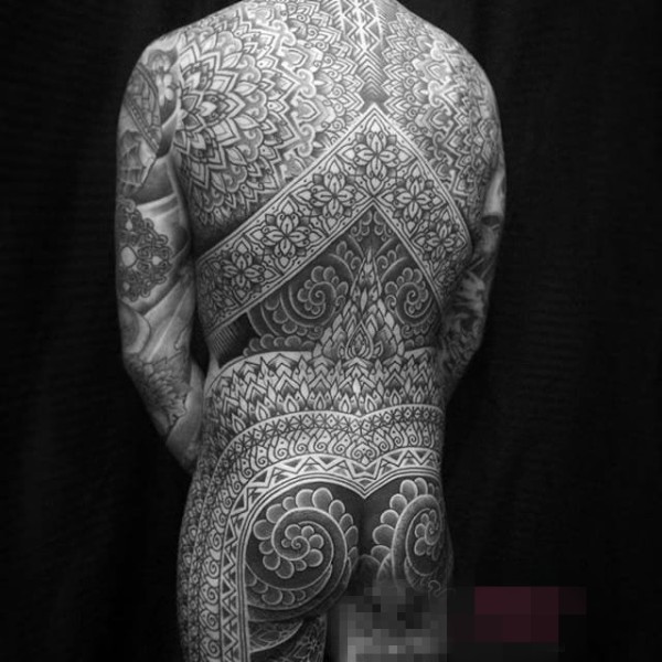 10款大面积黑白灰风格几何元素点刺技巧全身纹身图案