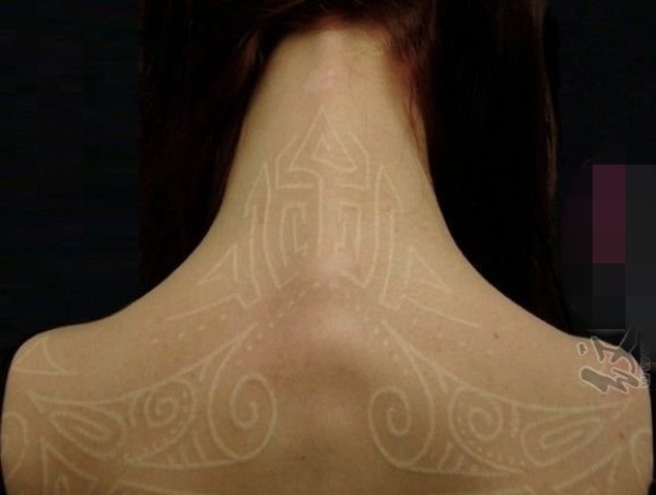 女生后腰纹身黑白灰风格抽象线条纹身图案