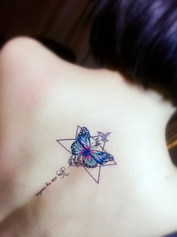 后背个性彩绘蝴蝶几何纹身图案