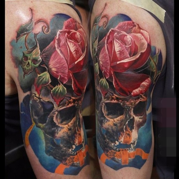 逼真的超现实主义花纹身图案来自纹身师莫拉莱斯