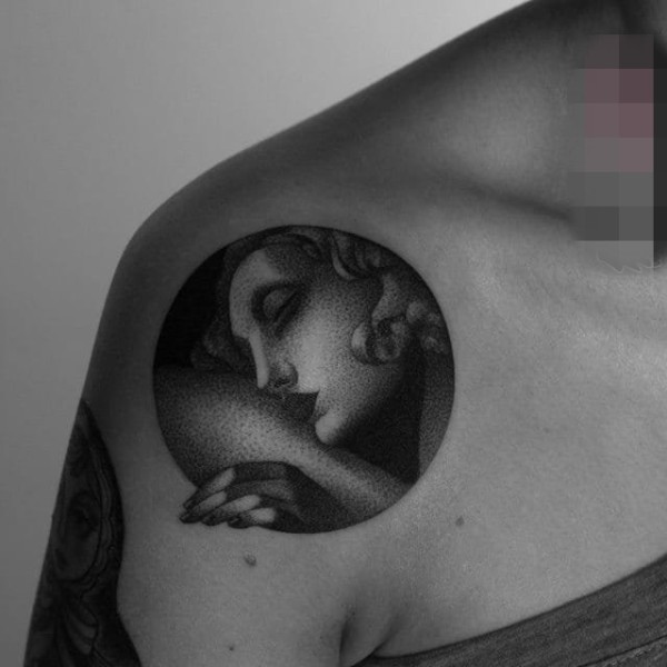 女性肩部肖像刺青_肖像纹身图案大全_纹身图吧
