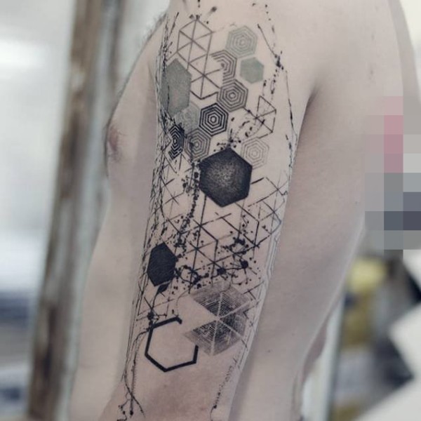 12款黑白灰风格几何元素点刺技巧简约线条纹身图案