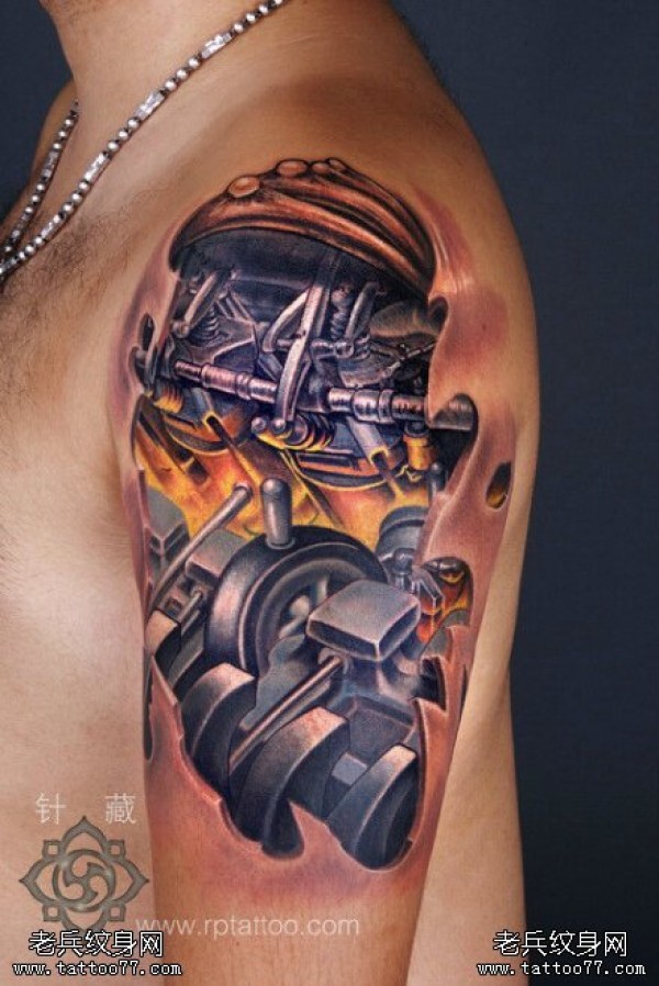 大臂机械彩色3D纹身图案