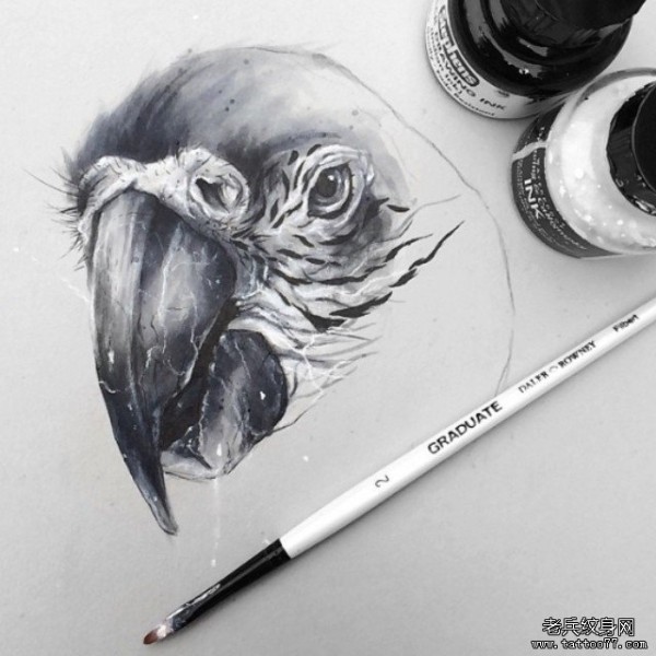 欧美鹦鹉头像黑灰纹身图案手稿
