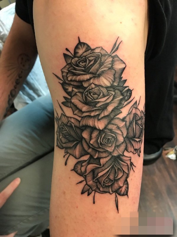 欧美玫瑰纹身 男生手臂上花朵纹身图片