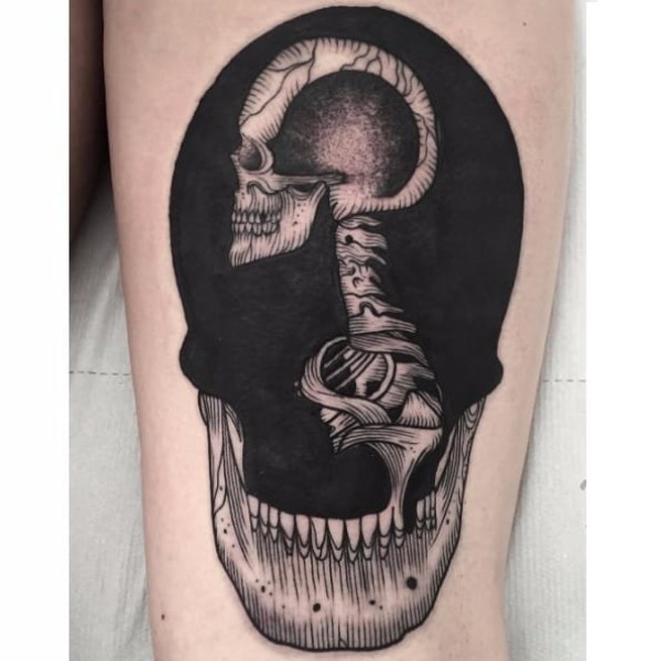 男人大臂黑白彼岸花骷髅_黑白纹身图案大全_纹身图吧
