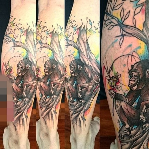 帅气的彩色花腿纹身水墨画纹身图案