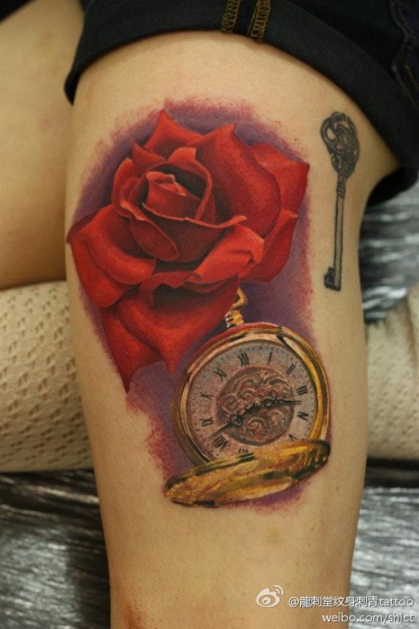 欧美玫瑰纹身 男生手臂上花朵纹身图片
