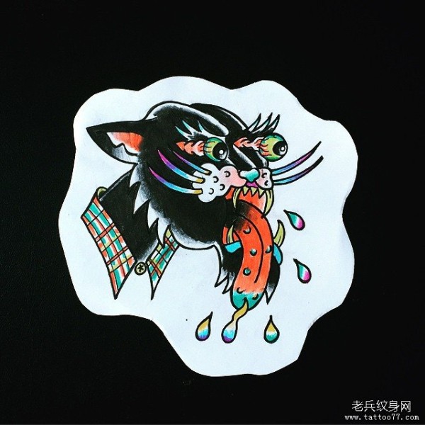 12款漂亮的黑色猫图腾纹身图案手稿素材