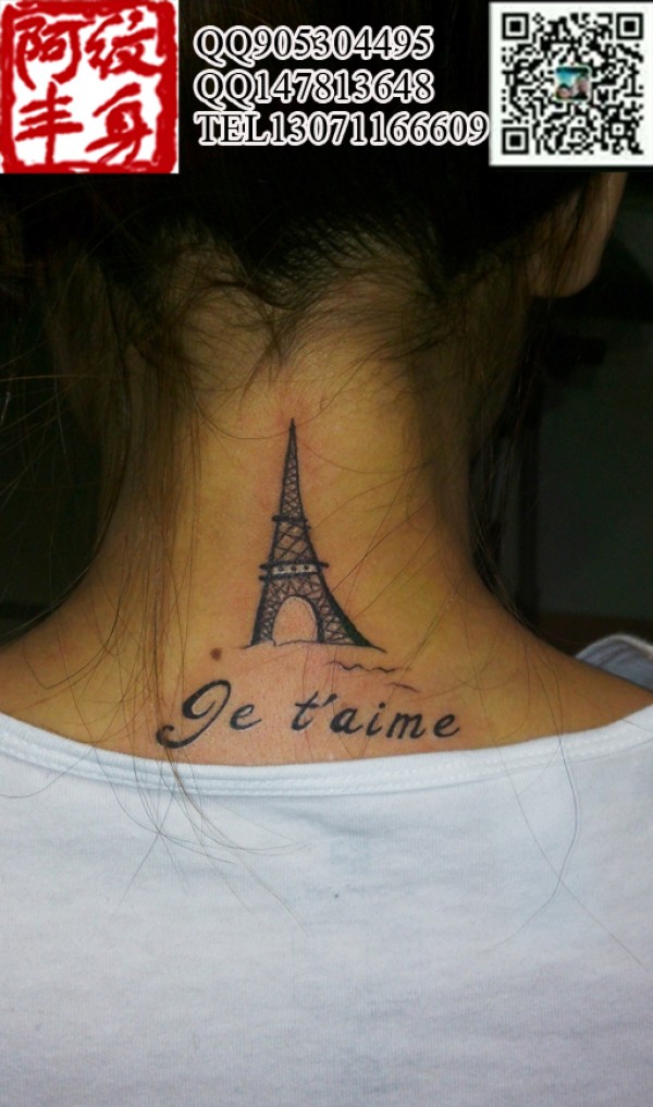 文字纹身女后肩纹身