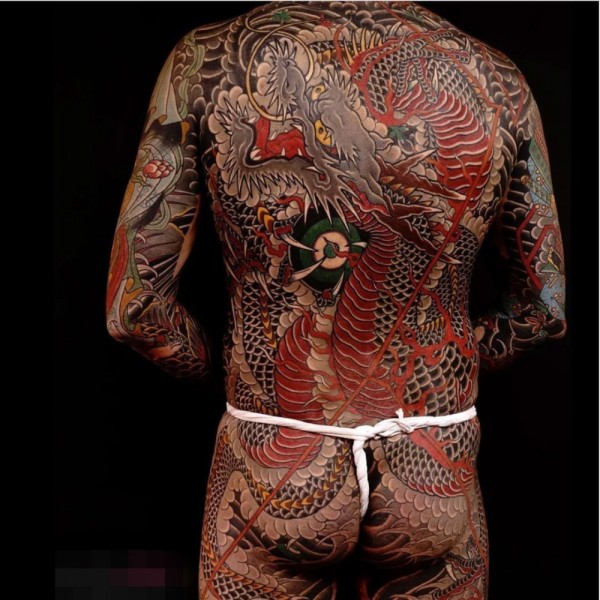 火红色的龙纹身