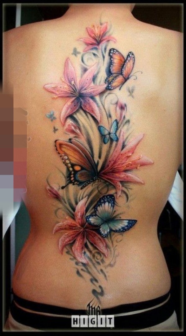女性喜欢的漂亮的3D立体蝴蝶纹身图案