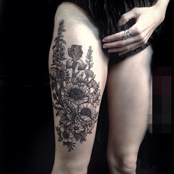 男人大臂黑白彼岸花骷髅_黑白纹身图案大全_纹身图吧