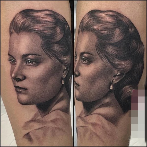 黑白点刺技巧抽象线条小动物和人物肖像纹身图案