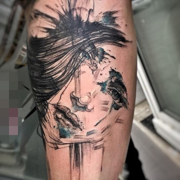 渐变点刺技巧个性几何元素人物肖像纹身图案