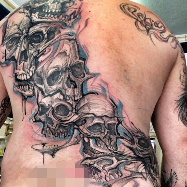 渐变点刺技巧个性几何元素人物肖像纹身图案
