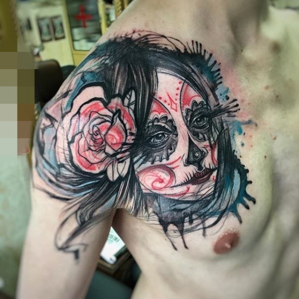 女性肩部肖像刺青_肖像纹身图案大全_纹身图吧
