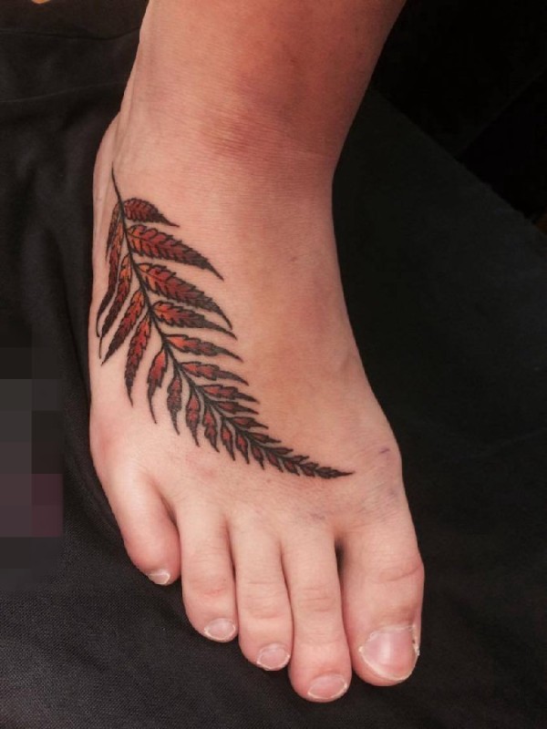 脚背上彩绘简约树叶枫叶纹身图片