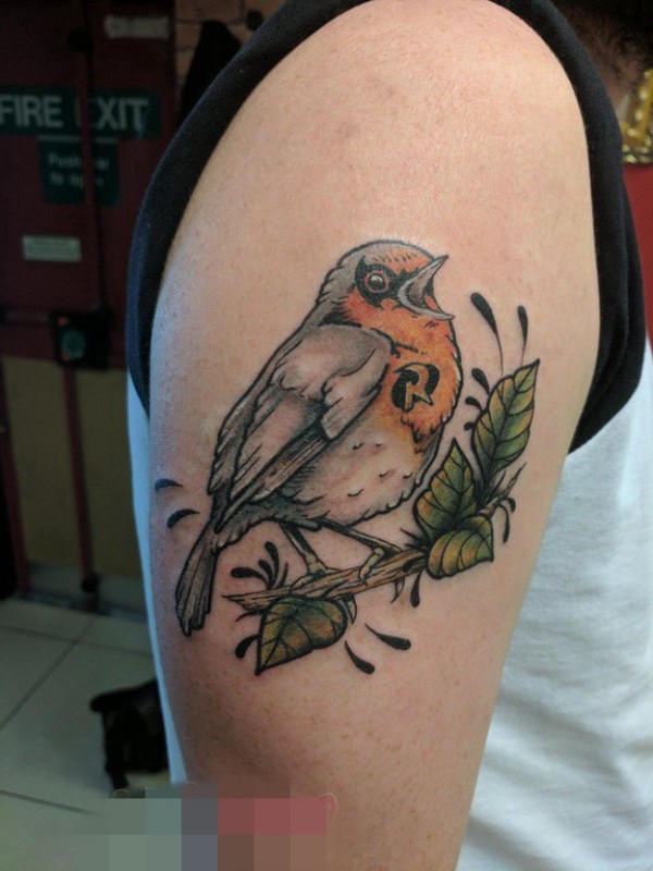 男生手臂上彩绘技巧植物元素小动物鸟纹身图片