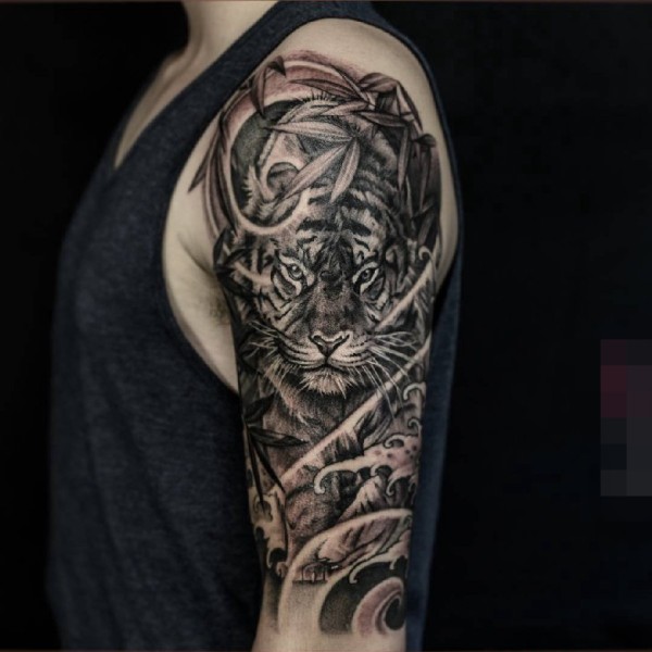 霸气半胛老虎纹身_动物纹身图案大全_纹身图吧