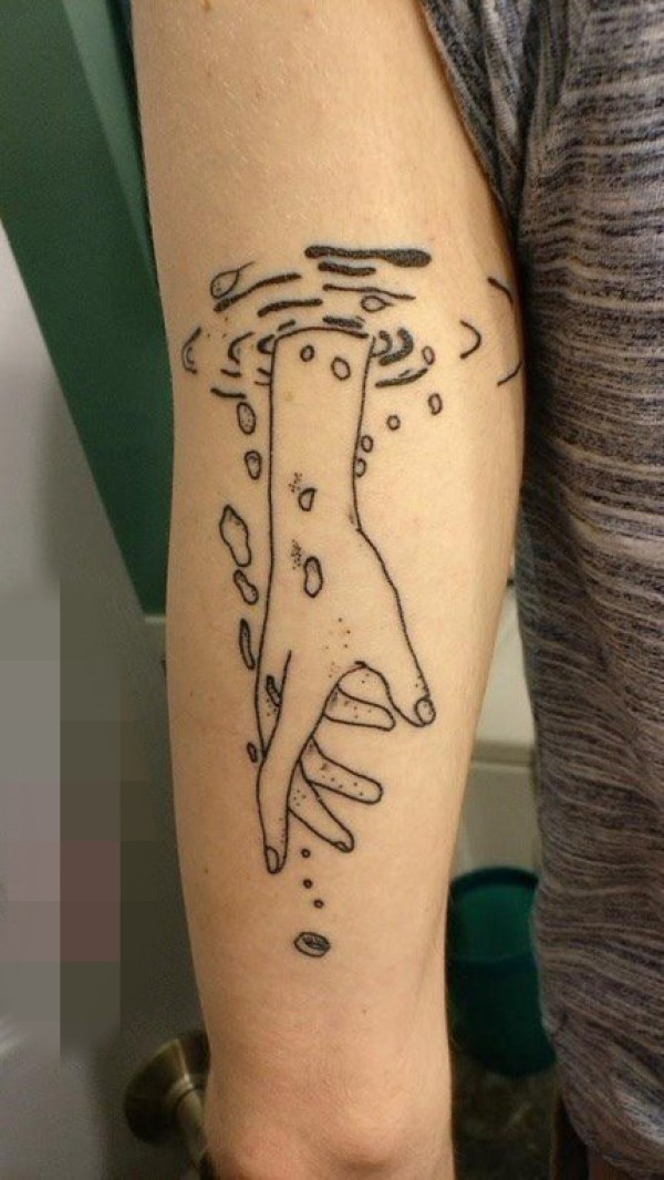 女生手腕上黑白个性线条纹身图片