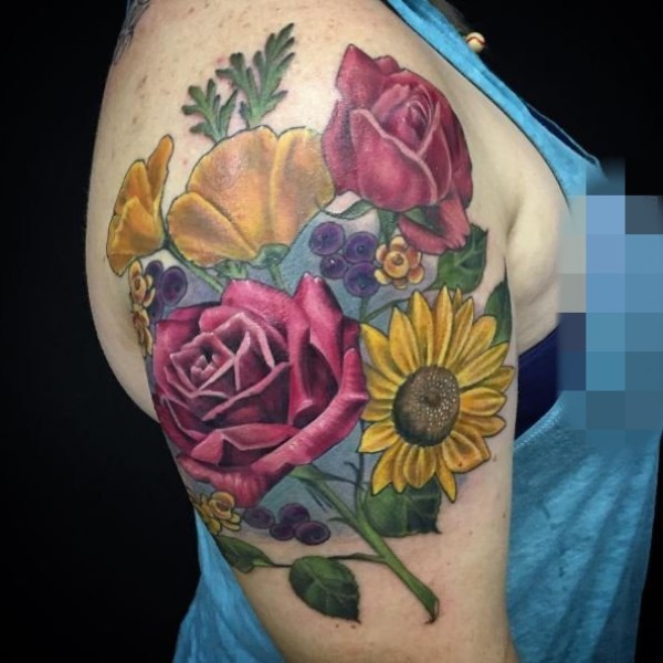 欧美玫瑰纹身 男生手臂上花朵纹身图片