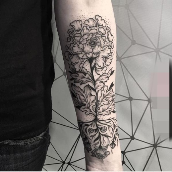 欧美玫瑰纹身 男生手臂上花朵纹身图片