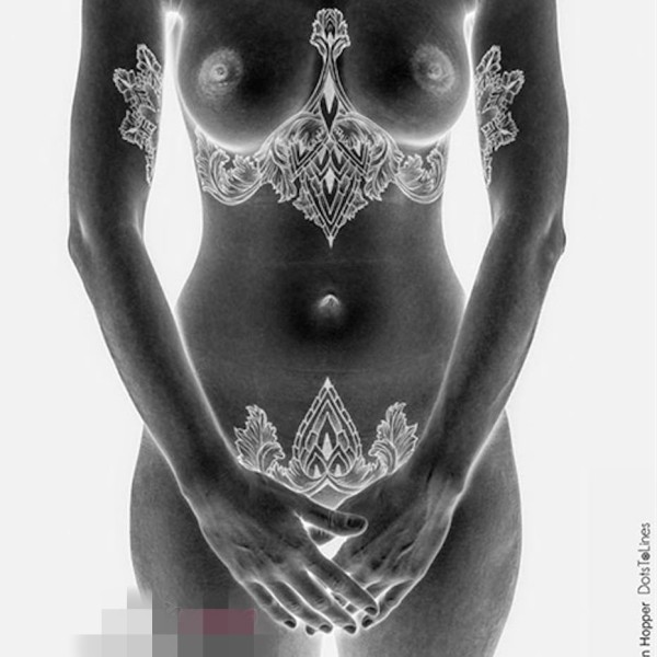 漂亮的白色几何元素简单个性线条隐形纹身图案