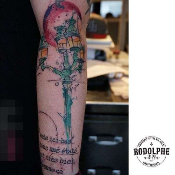 胳膊原创水彩心上钥匙纹身图案