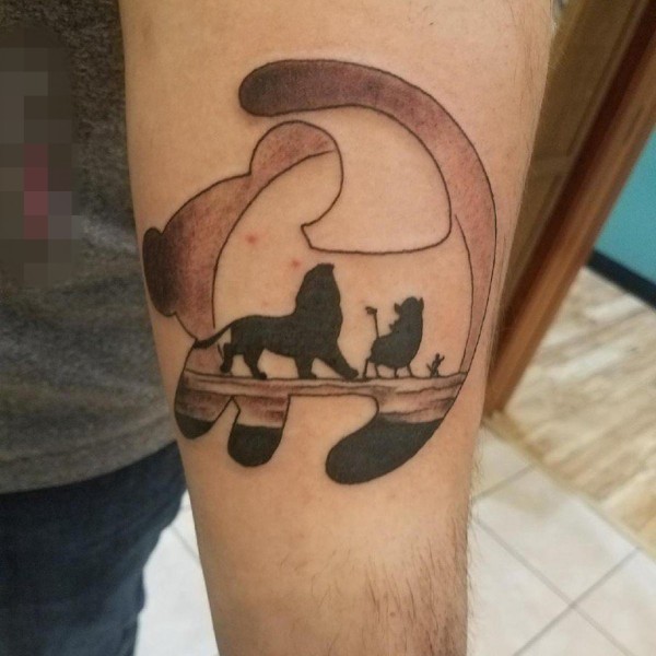 手臂上黑白点刺技巧抽象线条动物纹身图片