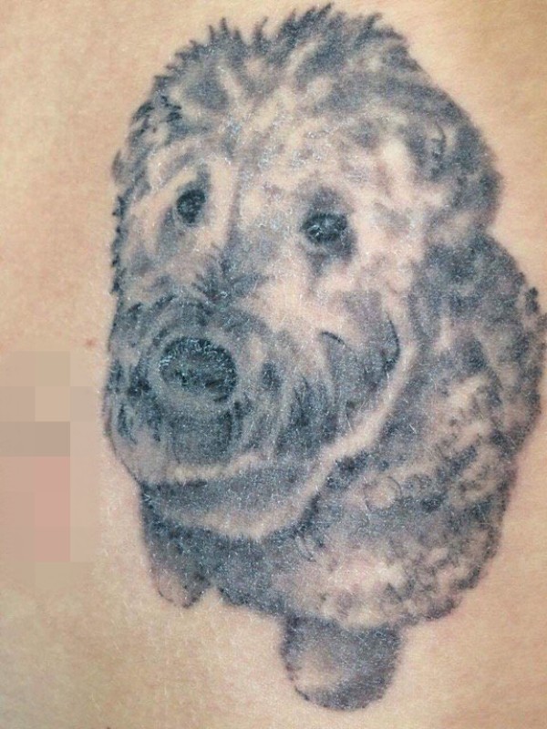 手臂上黑白点刺技巧可爱动物小狗纹身图片