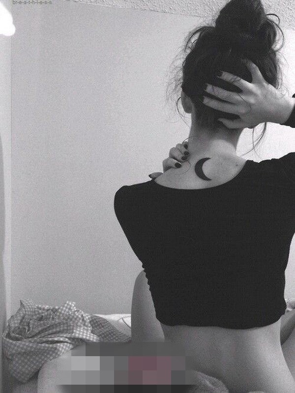 女生后腰纹身黑白灰风格抽象线条纹身图案