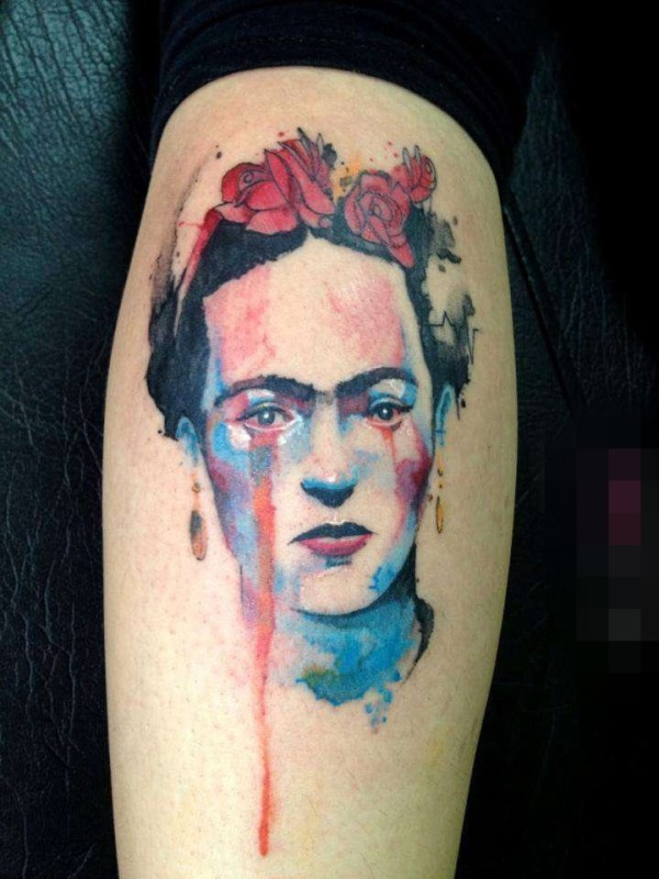 帅气的彩色花腿纹身水墨画纹身图案