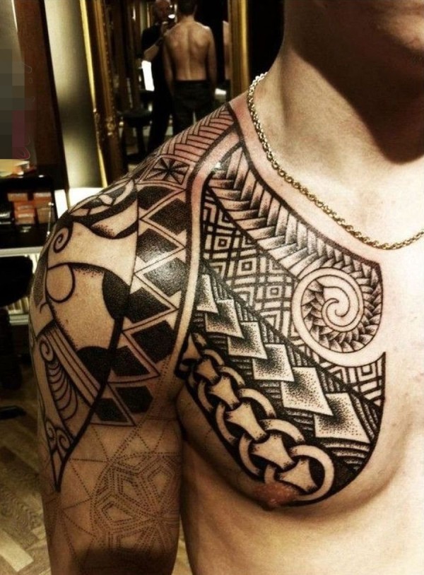 霸气的黑色点刺技巧几何简约线条纹身图案