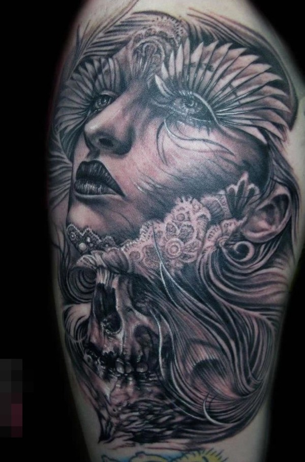 女性肩部肖像刺青_肖像纹身图案大全_纹身图吧