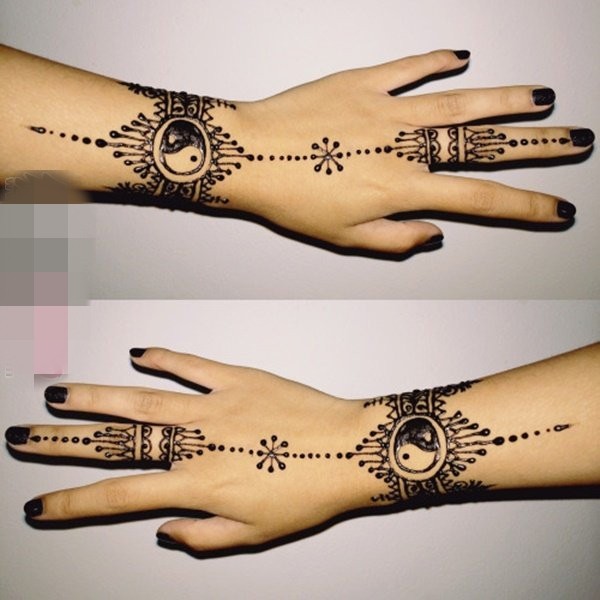 黑白线条轮廓阴阳纹身图案