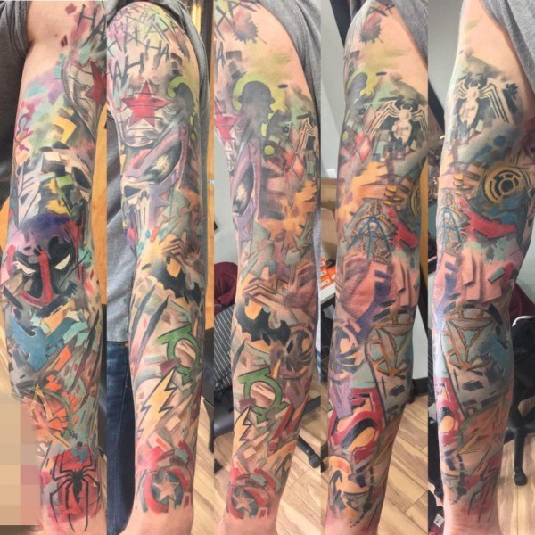 男生手臂上彩绘花臂动漫图腾纹身图片