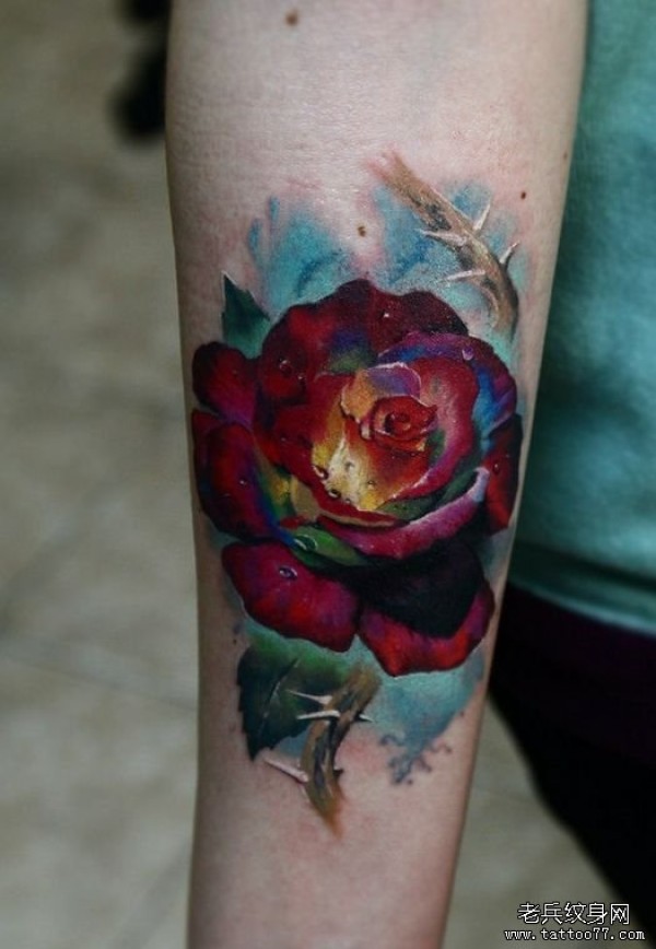 欧美玫瑰纹身 男生手臂上花朵纹身图片