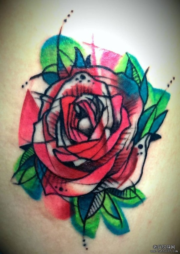 欧美玫瑰纹身 男生手臂上花朵纹身图片
