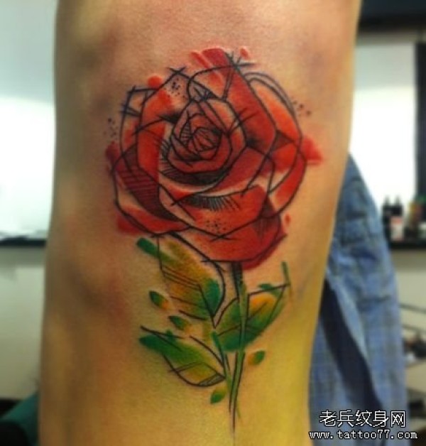 欧美玫瑰纹身 男生手臂上花朵纹身图片