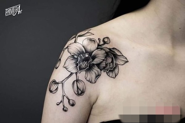 后肩唯美花藤英文图案图片_植物纹身图案大全_纹身图吧