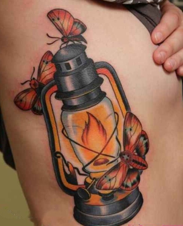 美女腰部个性创意复古的油灯纹身图案